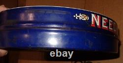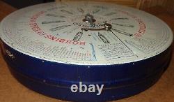 I believe that all of the tubes have something inside, whether it be needles or shuttles. This metal case measures approx. 16" across and 3-1/2" tall. There is expected fading and wear marks / scratches from being an antique item. There is some old scotch style tape, as you can see in my photos. It may be a little dusty inside. Please look at all 24 of the pictures for details.This is a hefty item-almost 9 lbs. Number on the Tube + quantity.